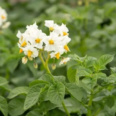 Цветение умеренное, не слишком обильное. Венчики цветков окрашены в белый цвет. Одной из ключевых особенностей, напрямую влияющих на агротехнику уборки, является компактное расположение клубневого гнезда. Столоны (подземные побеги) короткие, поэтому клубни формируются близко к центру куста, не «разбегаясь» в стороны.
