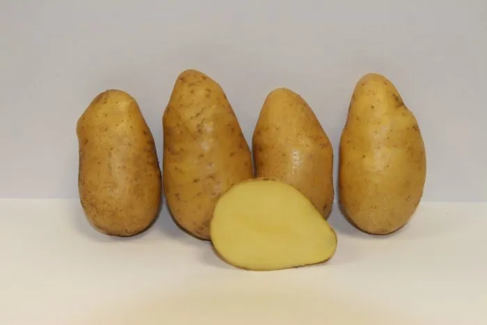 Клубни отличаются высокой товарностью и выровненностью. Их однородная овальная форма — ключевое преимущество для фермеров, так как такой картофель меньше травмируется при механической уборке и транспортировке, а также удобен для фасовки и продажи.