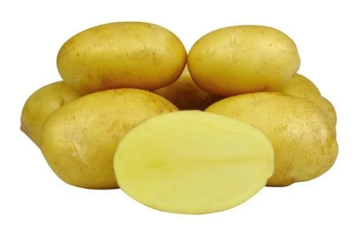 Желтый цвет мякоти указывает на присутствие каротиноидов. При тепловой обработке он сохраняется, что делает блюда визуально аппетитными. Гладкая желтая кожура не только придает картофелю рыночный лоск, но и упрощает его очистку от остатков почвы после уборки.