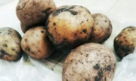 Для работы предпочтительнее использовать вилы, а не лопату. Это снижает риск порезов клубней, которые у Люсинды имеют овальную форму и средний размер. Подкапывать куст следует сбоку, на некотором расстоянии от основного стебля, чтобы минимизировать повреждение подземных столонов, на которых могут оставаться клубни.