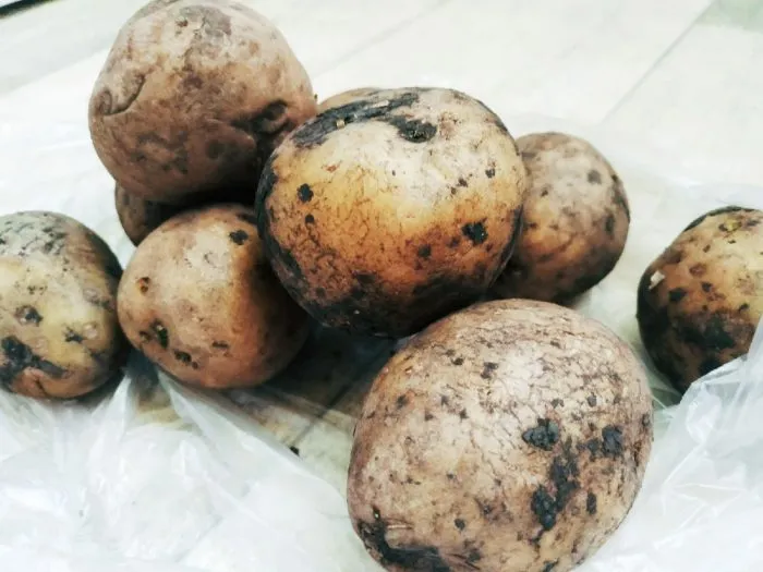 - Полевая сортировка. Сразу после выкопки необходимо отбраковать клубни с явными признаками болезней, механическими повреждениями (порезы, трещины) и «зеленцы». Такой картофель не подлежит длительному хранению и должен быть использован в первую очередь.