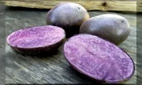 | Весь синий (All Blue) | Синяя с белым кольцом | Среднепоздний | Рассыпчатый после варки | Декоративность, цвет частично теряется при готовке |