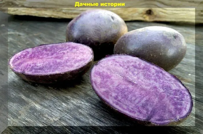 | Весь синий (All Blue) | Синяя с белым кольцом | Среднепоздний | Рассыпчатый после варки | Декоративность, цвет частично теряется при готовке |
