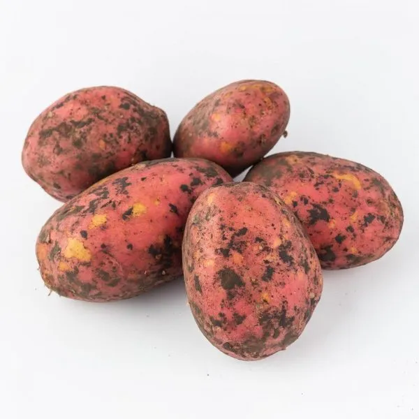 Истинная «изюминка» сорта раскрывается при выкопке. Клубни имеют характерную удлиненно-овальную форму и покрыты гладкой, достаточно плотной кожурой насыщенного красного цвета. Глазки залегают мелко, их количество невелико, что делает механическую и ручную очистку менее трудоемкой.