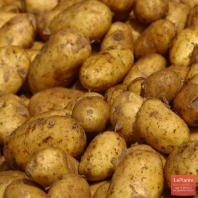 Каждый куст формирует от 8 до 12 клубней. Они отличаются крупным размером и средней массой от 95 до 192 граммов, имеют привлекательную округло-овальную форму с гладкой желтой кожурой.