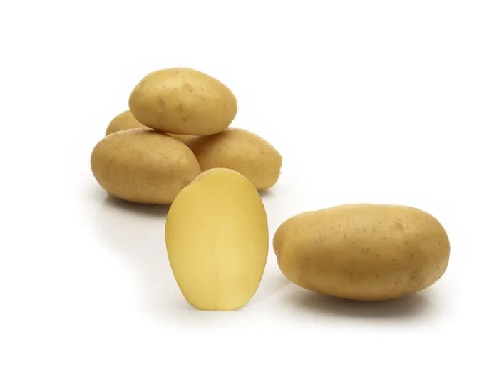 Визуальная привлекательность — одна из сильных сторон этого картофеля. Кожура имеет ровный желтый цвет без выраженной сетчатости. Мякоть также окрашена в желтый цвет, причем окраска достаточно интенсивная и сохраняется после кулинарной обработки.