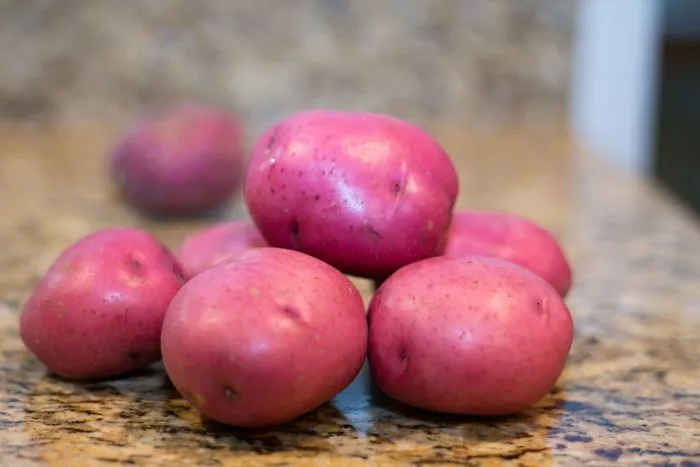 - Освещение: полная темнота. На свету в клубнях начинает вырабатываться ядовитый соланин, о чем сигнализирует позеленение кожуры. У сорта Рубин с его красной с фиолетовым оттенком кожурой это заметно не так явно, как у светлых сортов, но процесс происходит с той же интенсивностью.