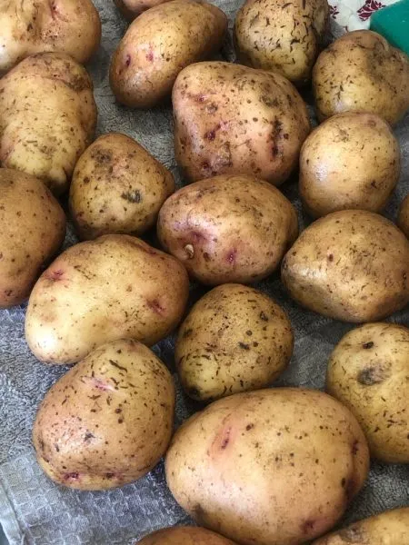 После этого урожай перемещают под навес, в сарай или другое сухое, хорошо проветриваемое помещение с рассеянным светом. Здесь картофель проходит обязательный лечебный период, который длится 10-15 дней при температуре +13…+18 °C. В это время кожура окончательно дозревает и грубеет, а мелкие повреждения зарубцовываются.