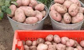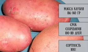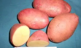 Клубни имеют очень характерный, запоминающийся вид. Их форма овальная, выровненная, что не только удобно для укладки в тару и хранения, но и снижает механические повреждения при машинной уборке. Поверхность покрыта гладкой кожурой насыщенного красного цвета, которая легко отмывается от почвы.