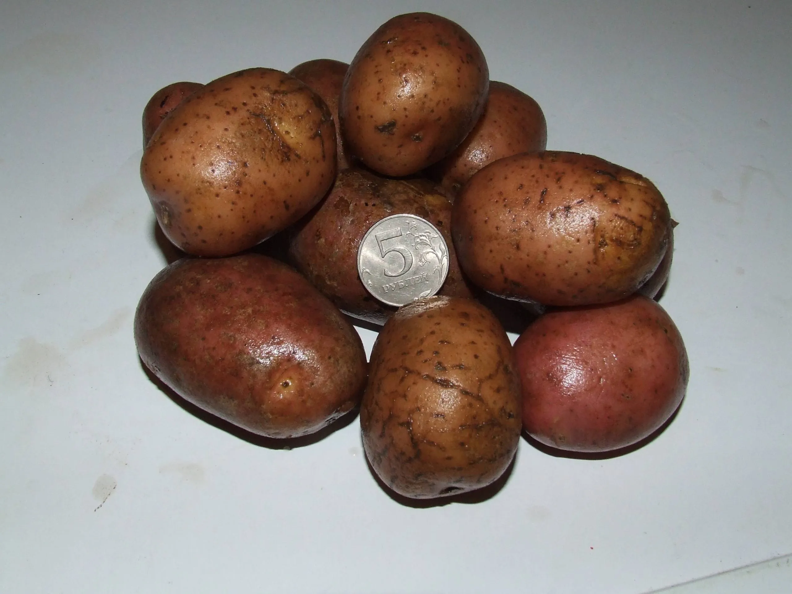 Форма округлая, часто с незначительной вытянутостью, что делает клубни очень выровненными по размеру. Такая однородность — большое преимущество как для фермеров при механизированной уборке и калибровке, так и для дачников, ценящих эстетику урожая.