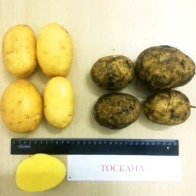 Эти свойства делают Тоскану идеальным выбором для приготовления салатов (например, оливье или винегрета), супов, жарки во фритюре или на сковороде, а также для запекания. Товарный вид дополняет привлекательная светло-желтая окраска кожуры и мякоти, а также выровненная, среднего размера форма клубней массой 90-125 граммов.
