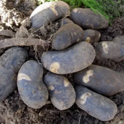Цвет и структура кожуры. Кожура обладает насыщенной фиолетовой окраской, которая у полностью вызревших клубней становится равномерной и плотной. Эта плотность является практическим преимуществом, так как снижает риск повреждений при копке и транспортировке, напрямую влияя на сохранность урожая.
