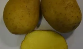 Поверхность клубня покрыта гладкой желтой кожурой. Глазки немногочисленны, мелкие и поверхностные, что делает чистку и мойку урожая менее трудоемкой. На разрезе видна однородная светло-желтая мякоть без выраженных цветовых колец или пятен.