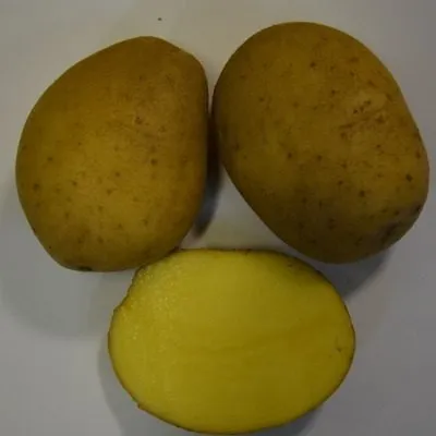 Поверхность клубня покрыта гладкой желтой кожурой. Глазки немногочисленны, мелкие и поверхностные, что делает чистку и мойку урожая менее трудоемкой. На разрезе видна однородная светло-желтая мякоть без выраженных цветовых колец или пятен.