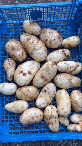 Удлиненная форма клубней требует особой аккуратности при выкопке. Использование вил предпочтительнее лопаты, так как снижает риск порезов. Подкапывать куст следует сбоку, на некотором расстоянии от основного стебля, чтобы минимизировать повреждение столонов, на которых могут находиться клубни.