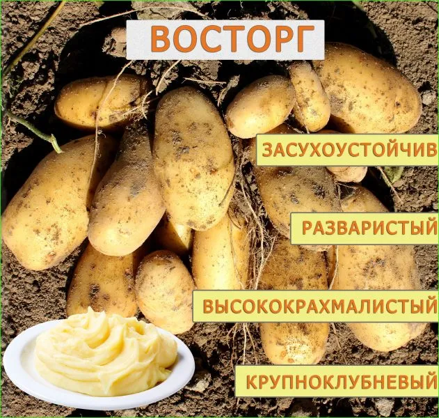 Сорт относится к категории универсальных столовых сортов. Среднее содержание крахмала (16,1%) и средняя развариваемость определяют его широкий профиль использования. Клубни хорошо держат форму при варке в кожуре и очищенными, поэтому Восторг отлично подходит для приготовления супов, салатов, окрошки и жарки.