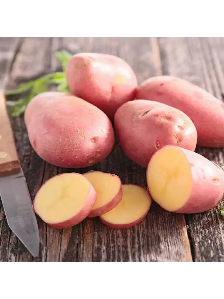 Кожура окрашена в интенсивный красный цвет, который распределен равномерно. Поверхность гладкая, с легким глянцевым блеском, что дополнительно подчеркивает товарность. Глазки залегают на средней глубине и их немного, что является практическим преимуществом — при очистке образуется меньше отходов.