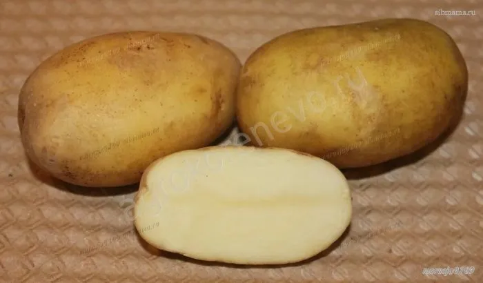 Товарный вид клубней также на высоте. Они имеют овальную форму, гладкую или среднегрубую желтую кожуру и массу до 150 граммов. Под одним кустом формируется от 7 до 12 таких клубней, что при высокой товарности 87-98% обеспечивает значительный выход качественной продукции с каждой делянки.