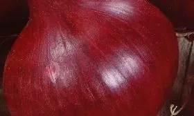 Внутренние сочные чешуи отличаются контрастным рисунком. На срезе чётко видны чередующиеся кольца: белые (или слегка розоватые) и яркие фиолетово-красные. Такой мраморный эффект не только декоративен, но и равномерно распределён по всей луковице, что ценится в кулинарии.