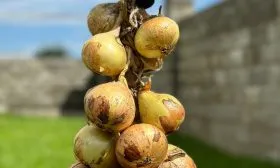 - Качественную просушку. Разложите урожай в один слой прямо на грядке (в солнечную погоду) или под навесом, на чердаке, в сарае с хорошим сквозняком. Процесс занимает 10-15 дней. Готовность определяется по тонкой, жесткой шейке и характерным для сорта темно-желтым покровным чешуям.