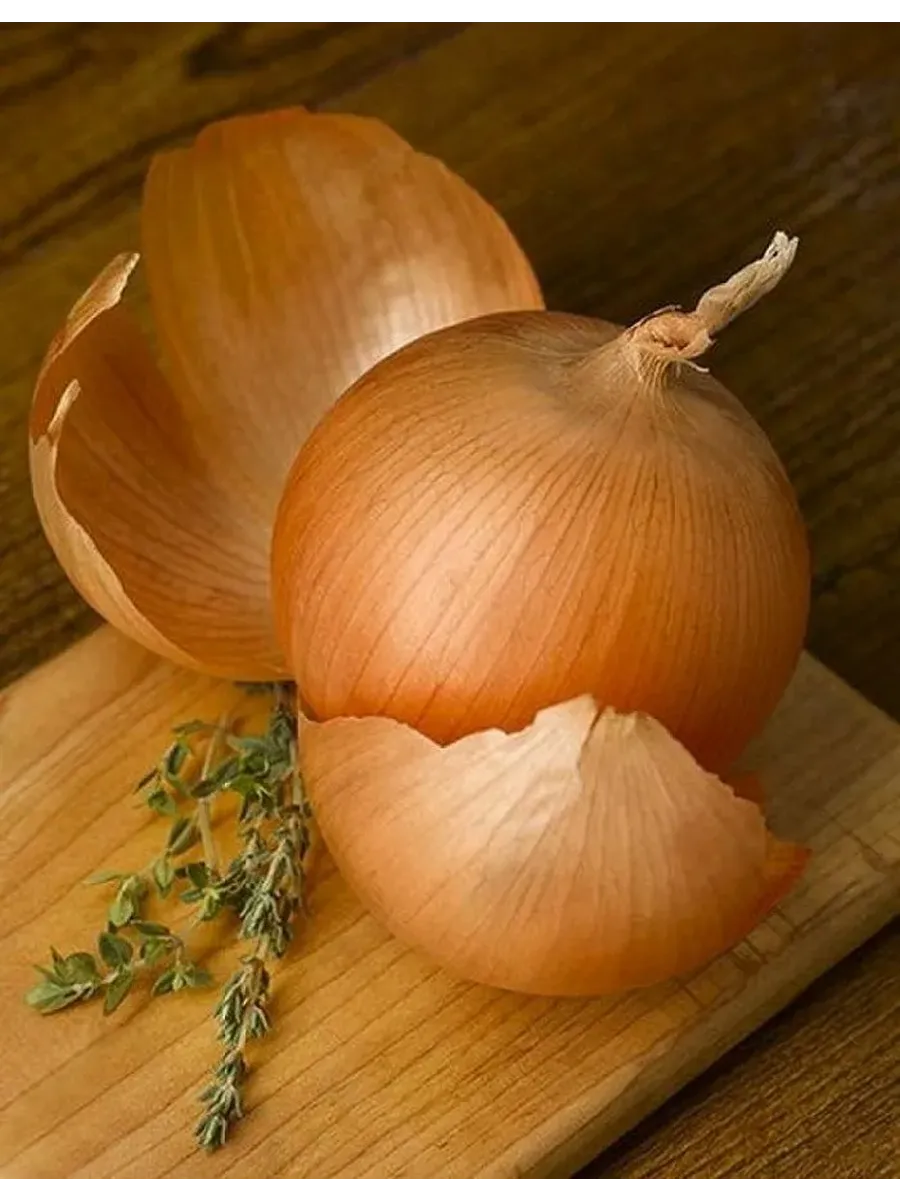 Презентабельность во многом определяется окраской сухих покровных чешуй — они имеют насыщенный темно-желтый, иногда с золотистым отливом, цвет. Под ними скрываются плотно прилегающие сочные чешуи чисто-белого цвета, что считается маркером высокого внутреннего качества и отличных вкусовых свойств.