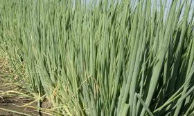 Перо полое внутри, но при этом отличается значительной толщиной и сочностью. Длина листьев в фазу технической спелости, оптимальной для первой срезки, достигает 35-45 см. Ложный стебель (белая, неокрашенная часть у основания) длинный, крепкий и имеет чистый белый цвет, который резко контрастирует с темной зеленью, плавно переходя в нее.