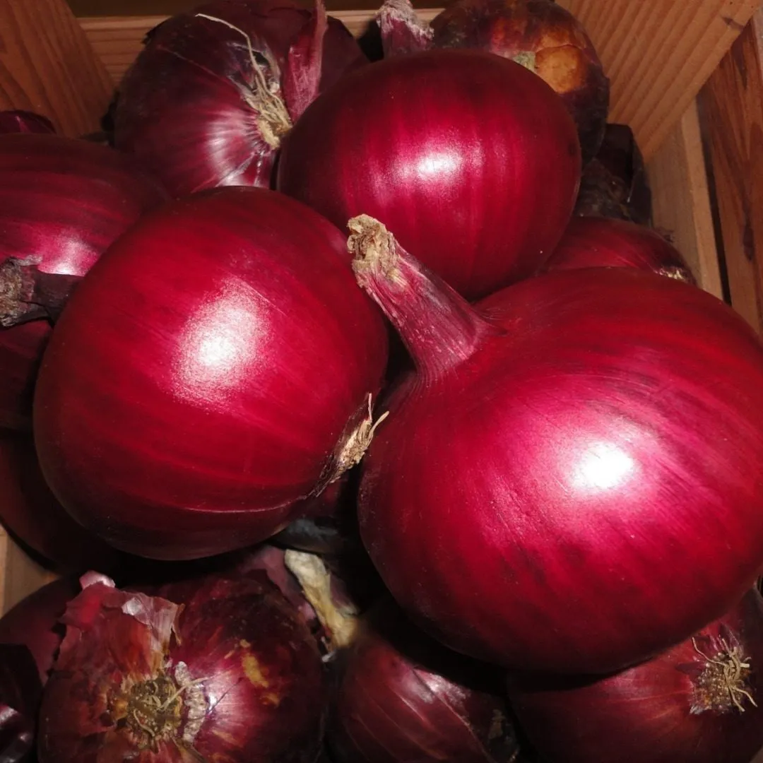 Этот гибрид удачно сочетает несколько характеристик, которые редко встречаются вместе у красных сортов. Он обладает привлекательной красной окраской сухих и сочных чешуй и полуострым сладковатым вкусом, что делает его отличным выбором для свежих салатов.