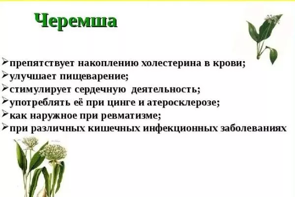 - В русской народной медицине листья черемши прикладывают к глазам при конъюнктивитах и рекомендуют в пищу при ослабленном зрении.