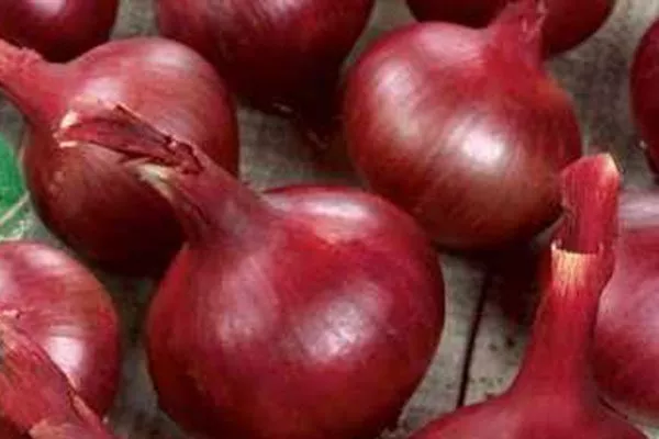 Листья невысокие, узкие, окрашены в зелёный цвет. Плод крупный, у него поперечно-эллиптическая конфигурация. Масса одного овоща достигает 70-80 г. Сочные и сухие чешуйки имеют одинаковый красный цвет. Лук малогнёздный, в гнезде формируется только один плод.
