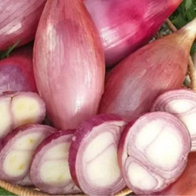 Окраска демонстрирует красивый контраст. Сухие покровные чешуи имеют насыщенный розовый цвет с выраженным пурпурным оттенком, что делает урожай очень привлекательным. При очистке и разрезе открываются сочные чешуи.