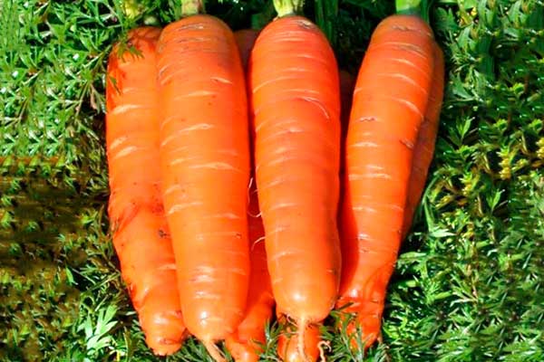 У моркови цилиндрическая конфигурация и закруглённый кончик. Длина овощей достигает 15 см, а в диаметре они не превышают 4 см. Кожура окрашена в ярко-оранжевый оттенок, как и внутренняя часть.