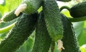 Плоды короткие, длиной 9,2-9,4 см, массой 95-100 граммов, имеют классическую цилиндрическую форму. Окраска темно-зеленая со светлыми, короткими полосами, доходящими примерно до трети длины огурца. Поверхность среднебугорчатая.