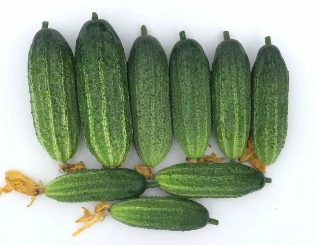 - Форма и размер: Огурцы имеют правильную цилиндрическую форму, они выравнены по всей длине, без перетяжек или искривлений. Длина в 9-12 см считается оптимальной как для свежего потребления, так и для всех видов переработки, особенно для консервирования в стандартных банках.