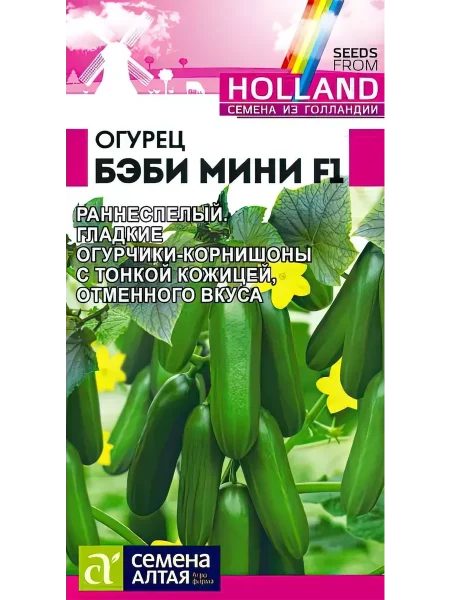 Ищете ранний и неприхотливый огурец для открытого грунта? Гибрид «Бэби Мини» — самоопыляемый сорт с гладкими темно-зелеными плодами корнишонного типа. Его хрустящие огурчики созревают всего за 49-51 день и отличаются отменным вкусом. Давайте разберемся в особенностях выращивания этого урожайного сорта.