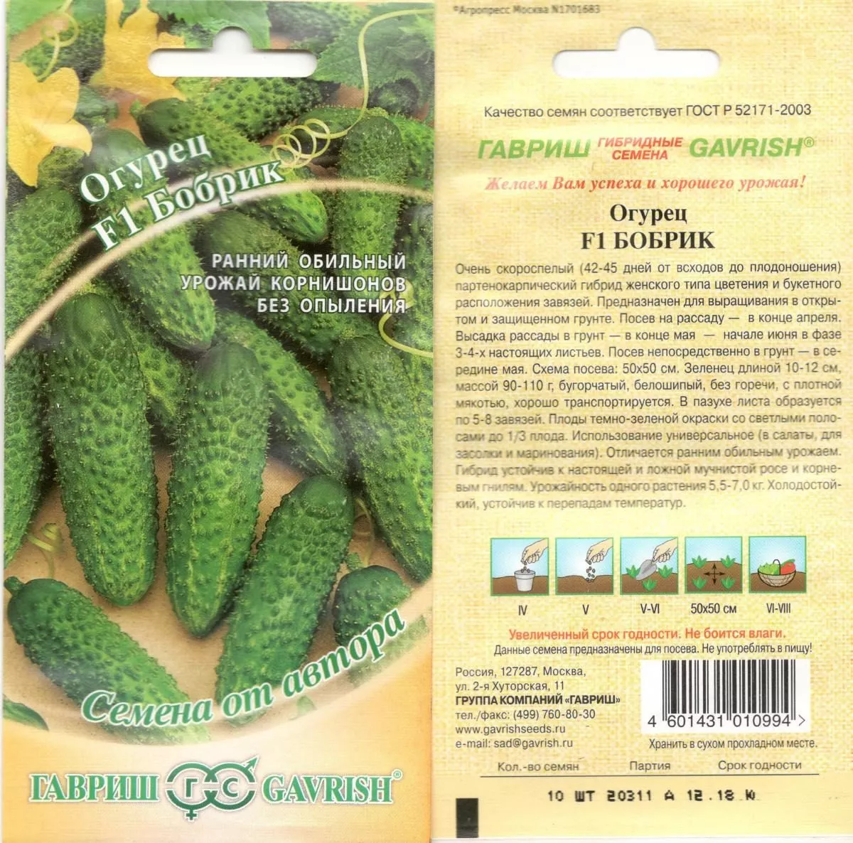 Семена гибрида Бобрик F1 от оригинатора, компании «Гавриш», как правило, проходят полную предпосевную обработку (инкрустацию, дражирование). Такие семена окрашены и не требуют замачивания, протравливания или барботирования. Их высевают строго сухими, чтобы не смыть защитно-стимулирующую оболочку.