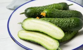 Масса зеленца строго соответствует заявленному диапазону от 95 до 107 граммов. Плоды выровненные по размеру и форме, что является большим преимуществом как для конвейерного сбора, так и для товарного вида. Мякоть плотная, хрустящая, генетически лишена горечи. Небольшая семенная камера и отсутствие развитых семян (следствие партенокарпии) обеспечивают нежную консистенцию и отличные вкусовые качества.