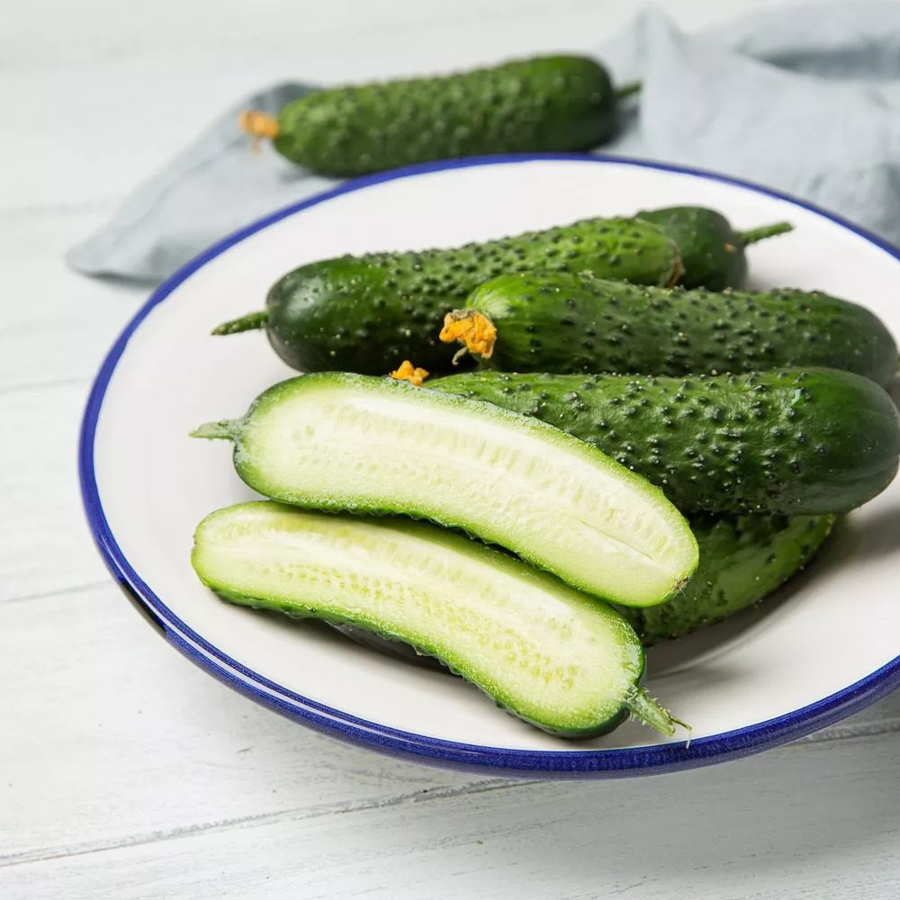 Масса зеленца строго соответствует заявленному диапазону от 95 до 107 граммов. Плоды выровненные по размеру и форме, что является большим преимуществом как для конвейерного сбора, так и для товарного вида. Мякоть плотная, хрустящая, генетически лишена горечи. Небольшая семенная камера и отсутствие развитых семян (следствие партенокарпии) обеспечивают нежную консистенцию и отличные вкусовые качества.