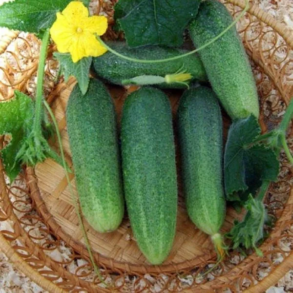Плоды — визитная карточка этого гибрида. Они имеют классическую овальную форму и насыщенную зеленую окраску без светлых полос, что говорит об их салатном назначении. Поверхность покрыта крупными, частыми бугорками, что придает огурцам привлекательный «нарядный» вид и характерную фактуру.