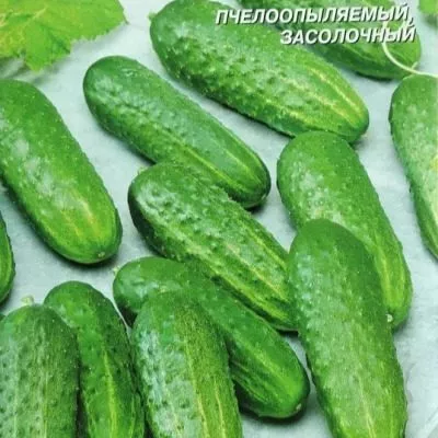 Плоды имеют классическую для засолочных сортов внешность. Их яйцевидная, выровненная форма и длина 8-10 см соответствуют корнишонному типу, что делает их идеальными для цельноплодного консервирования. Окраска — насыщенно-зеленая, с продольными светлыми полосами, доходящими примерно до середины плода.