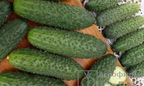 Короткоплодные зеленцы обратнояйцевидной формы удобны для нарезки. Их темно-зеленая окраска со средними полосами и среднебугорчатая поверхность делают салаты и овощные тарелки не только вкусными, но и эстетически привлекательными. Плотная структура мякоти без пустот обеспечивает приятный хруст, который сохраняется даже после заправки.