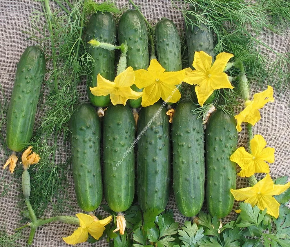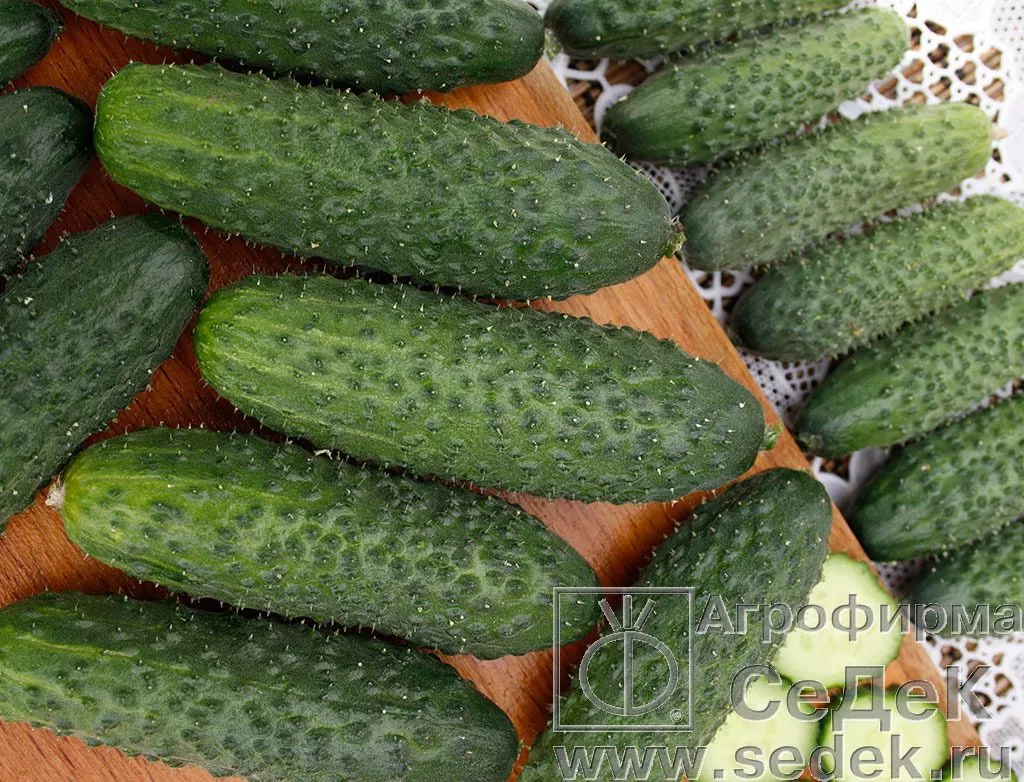 Короткоплодные зеленцы обратнояйцевидной формы удобны для нарезки. Их темно-зеленая окраска со средними полосами и среднебугорчатая поверхность делают салаты и овощные тарелки не только вкусными, но и эстетически привлекательными. Плотная структура мякоти без пустот обеспечивает приятный хруст, который сохраняется даже после заправки.