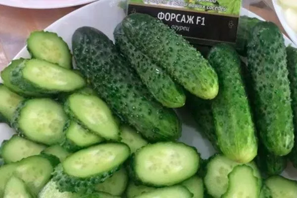 Плоды гибрида Форсаж характеризуются не только товарным видом, но и отличным вкусом. Он приятный, чуть сладковатый, освежающий. Наличия в мякоти огурца семян, находящихся в состоянии молочной зрелости, едок не ощущает.