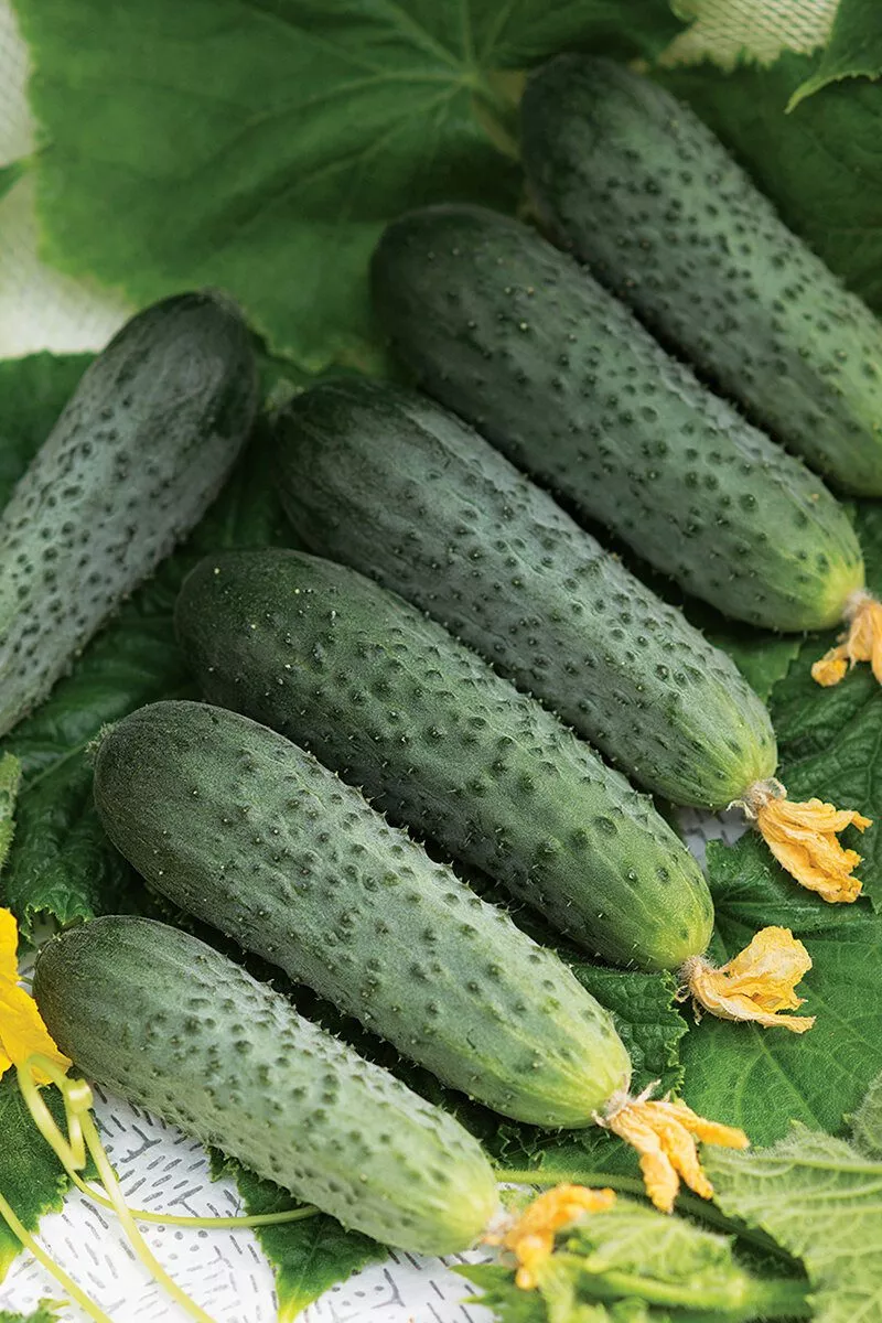 Плоды с короткими полосами и средне-крупнобугорчатой поверхностью имеют классический, ярко выраженный огуречный аромат и сочную мякоть. Благодаря этому они идеально подходят для летних овощных салатов, холодных супов вроде окрошки или гаспачо, а также для простой нарезки. Как и все огурцы, они низкокалорийны и на 95-97% состоят из структурированной воды, богатой калием и пищевыми волокнами, что способствует нормализации водно-солевого баланса и пищеварения.