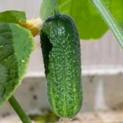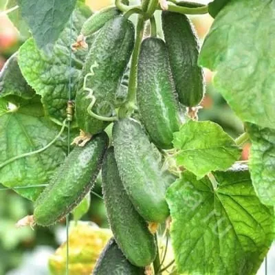 Плоды корнишонного типа, длиной до 10 см и массой 80-90 граммов, имеют выровненную цилиндрическую форму. Темно-зеленая окраска со слабо выраженной полосатостью и мелкобугорчатая поверхность делают их внешне привлекательными.