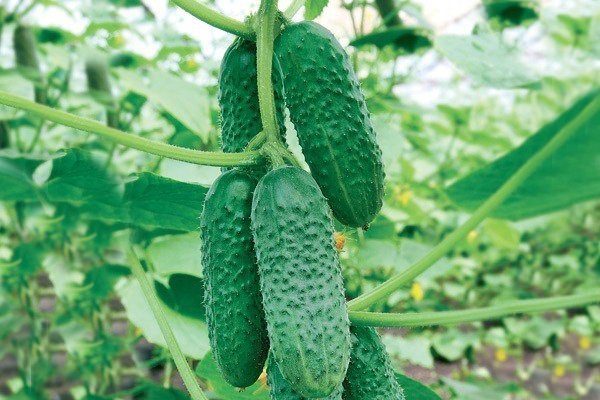 Плоды тёмно-зелёные, довольно короткие, у них форма цилиндра, поверхность покрыта крупными буграми. Имеются шипы белого цвета. Вес одного плода — 90-100 г.