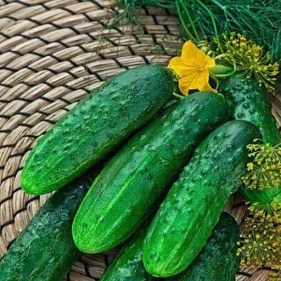 Плоды относятся к корнишонному типу, достигая в длину всего 5-7 см при массе 80-90 грамм. Их цилиндрическая форма отличается выравненностью, что особенно ценится при консервировании. Окраска насыщенно-зеленая с короткими светлыми полосами, не доходящими до середины плода.
