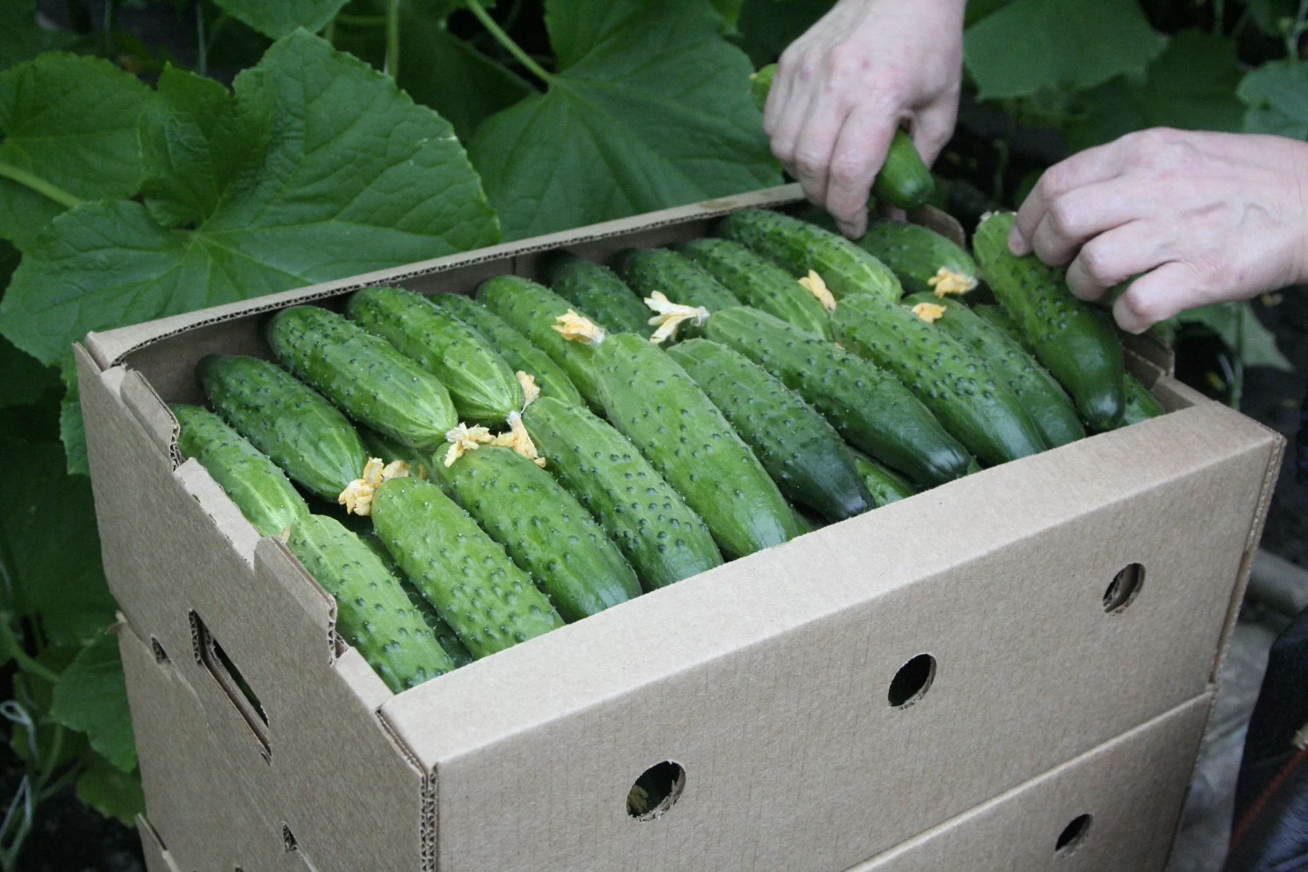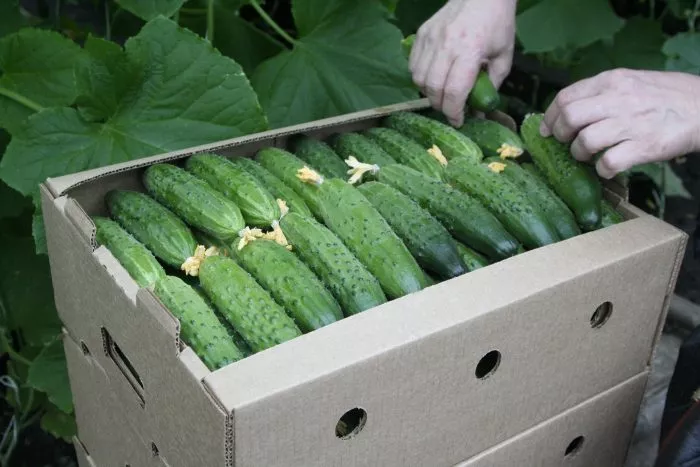 Собранные огурцы следует сразу убрать от прямого солнечного света. Их лежкость и транспортабельность действительно хороши, что обусловлено плотной структурой. Для хранения плоды нужно поместить в прохладное место с температурой +8…+12 °C и высокой влажностью воздуха. В таких условиях они сохраняют товарный вид и вкус до 7-10 дней.