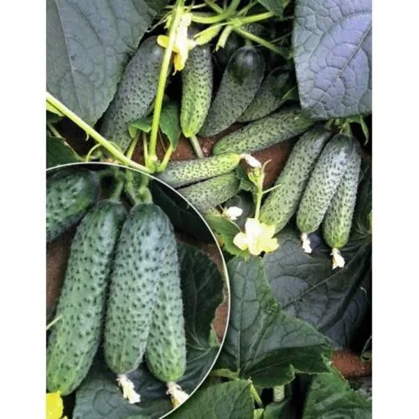Окраска и поверхность: Огурцы окрашены в насыщенный темно-зеленый цвет со светлыми полосами средней длины. Поверхность покрыта частыми мелкими бугорками. Опушение белое, неколючее, что делает процесс сбора урожая абсолютно комфортным и безопасным.