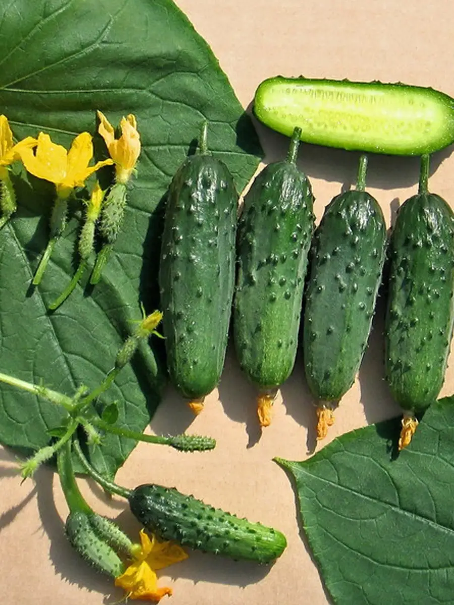 Короткоплодные, аккуратные огурчики длиной 6-8 см идеально подходят для летних блюд. Их темно-зеленая окраска с выраженными полосами делает нарезку и салаты визуально привлекательными. Плотная, но нежная консистенция мякоти и тонкая кожица обеспечивают приятный хруст в окрошке или свежих овощных нарезках. Благодаря компактному размеру их удобно использовать для детского питания или в качестве полезного снека.