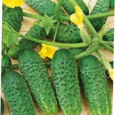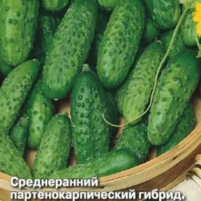 Окраска плодов насыщенная, темно-зеленая. Характерной особенностью является наличие коротких светлых полос, которые, согласно описанию, доходят примерно до середины огурца. Вдоль этих полос наблюдается редкая пятнистость, что добавляет плодам «классический» внешний вид.
